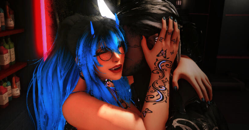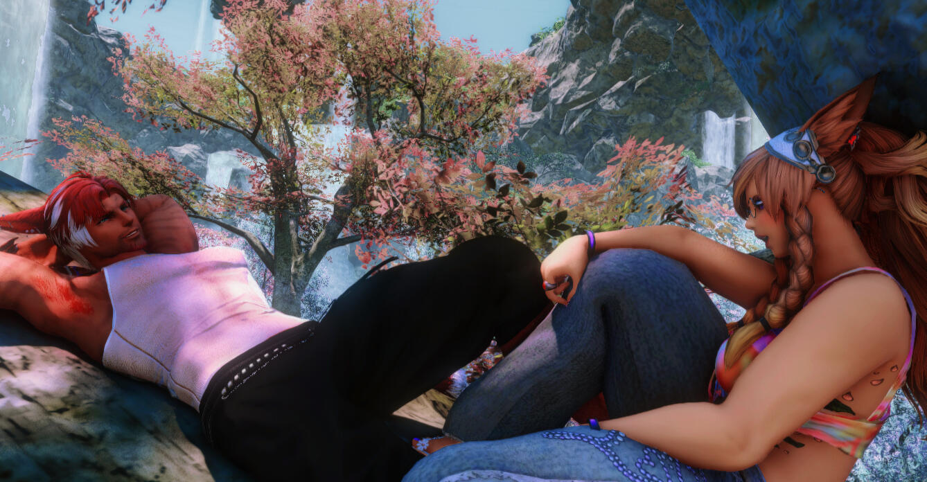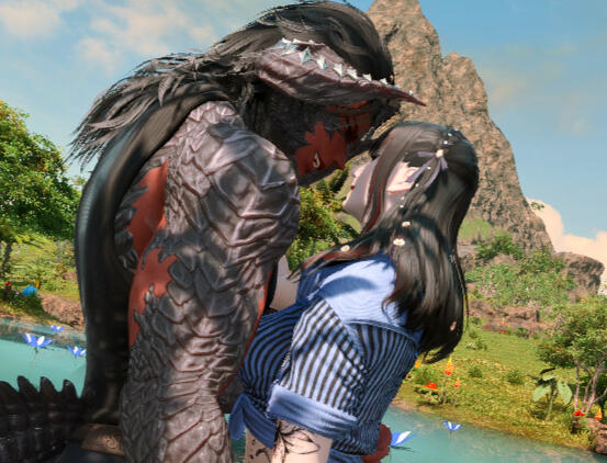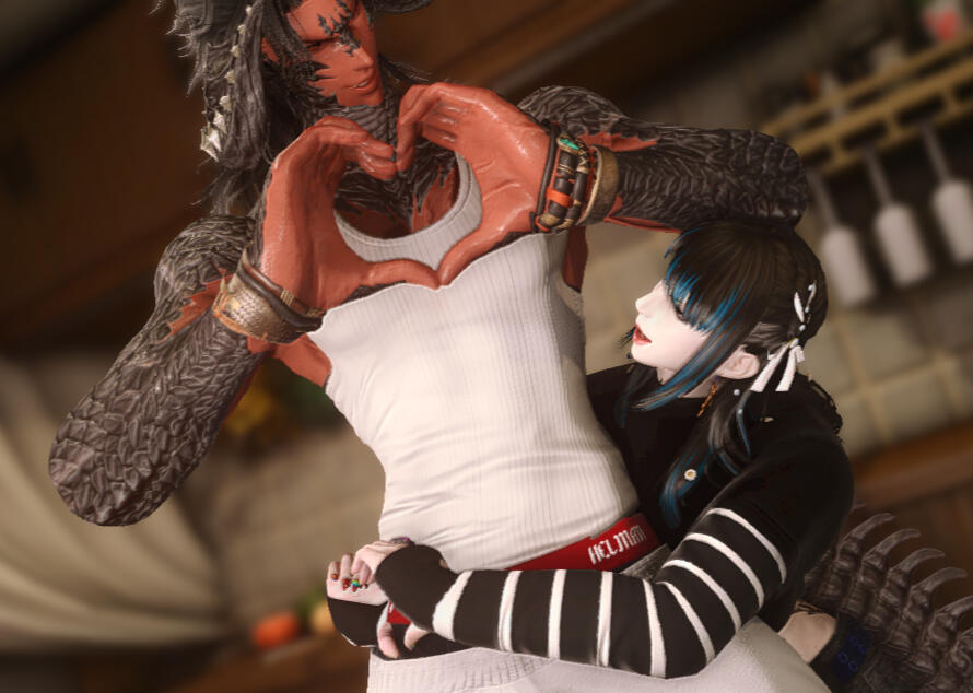 Talie is recently married to a wonderfully attententive and genuinely sweet Au Ra man she met while working at one of the venues they both are staff at. They are devoted to each other in body, mind and spirit. Their relationship is an open one, allowing them both the freedom to wander and explore, but her heart is inextricably tied to her Esugen.