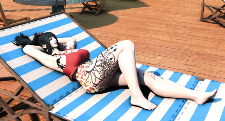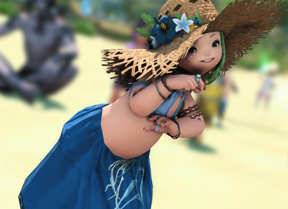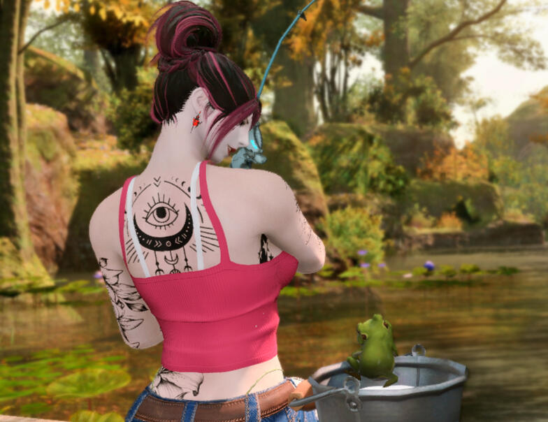 Talie is a quiet, sometimes clumsy roegadyn. Endearingly goofy, if slightly awkward at times, she can almost always be found sitting in a corner somewhere either crafting or people watching. She is a carpenter and weaver who takes commissions for custom furniture and a tailor of high quality armor and clothing. She has recently begun freelancing as a photographer and may sometimes be seen, camera in hand, photographing the various wildlife around Eorzea, both the two legged and four legged varieties, though for the latter she generally will take an escort due to her tendency to be absentminded and accidentally stumble into danger. She loves to sit on the beach at sunset. She'll often wax poetic about the beauty of her surroundings, and she tends to babble when she's nervous or feeling awkward to fill silences. She can also sometimes be tripped over curled up in a remote (and sometimes even perilous) location with her nose buried in a book. (Usually a novel of some type or a travel and adventure journal, though she'll quickly hide the book from you if she's indulging in a frivolous romance story.) She's extremely self conscious and a bit shy of new people, easily overwhelmed by large crowds, which is at odds with her love of music and night life, so she may seem a little quiet when approached, but with a little prodding, she'll speak animatedly on just about any subject, hiding her awkwardness behind a silly sense of humor. These days, though she won't hesitate to fight, especially when she sees someone in need of help, her nature is to find a diplomatic solution to problems. She can be brash when coming to the defense of someone smaller, however. Although her outward demeanor is shy and aloof, she's tender hearted with a soft spot for children, though she never had any of her own. Her hobbies are baking and exotic dancing, though you'd be hard pressed to get her to admit to the latter and it would take an persistent army to drag from her how she picked up that particular hobby.